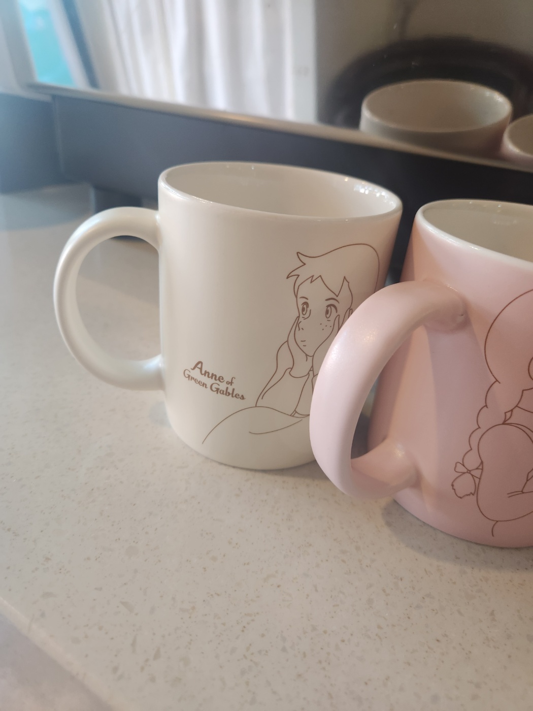 흰색과 분홍색컵이 있는데