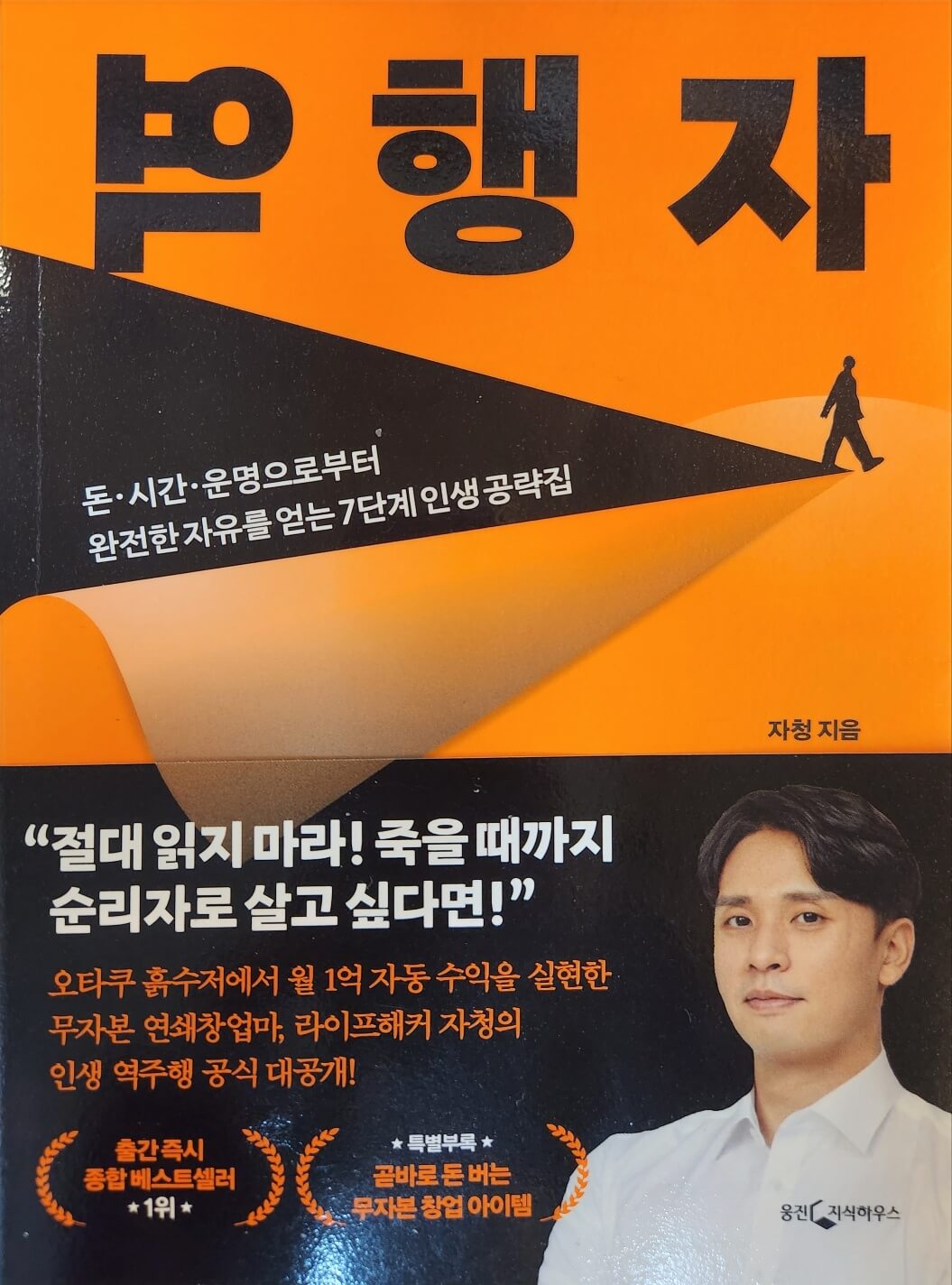 역행자는 자청님의 첫 책으로, 부와 행복을 쟁취하기 위한 방법을 7단계 모델로 체계화하며 출간 즉시 전 서점 종합 베스트셀러 1위를 기록하였다. 이 책은 1년 만에 40만 부라는 기록적인 판매를 보이며 현재까지도 많이 판매되고 많은 사람들이 추천하는 책이다. 글쓴이도 이 책이 너무 궁금하여 직접사서 읽어보게 되었다.